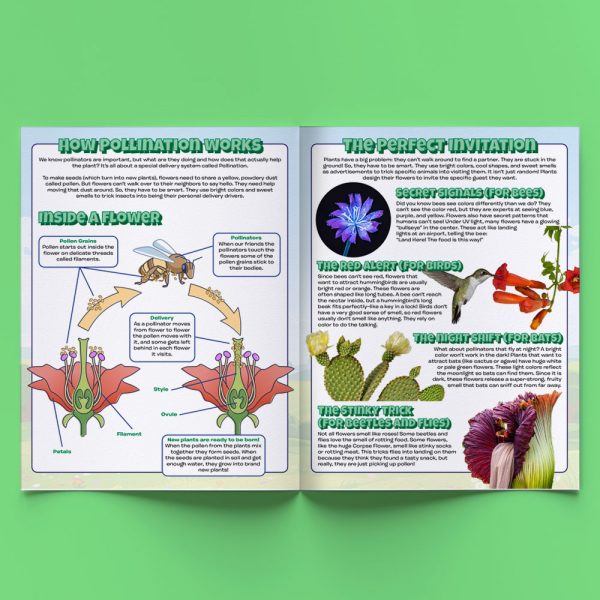 In this full color activity book elementary school kids will learn all about pollination, and the important work of the animals that make it all happen. Fun facts, instructive infographics, and engaging games will hold their attention to the last page.